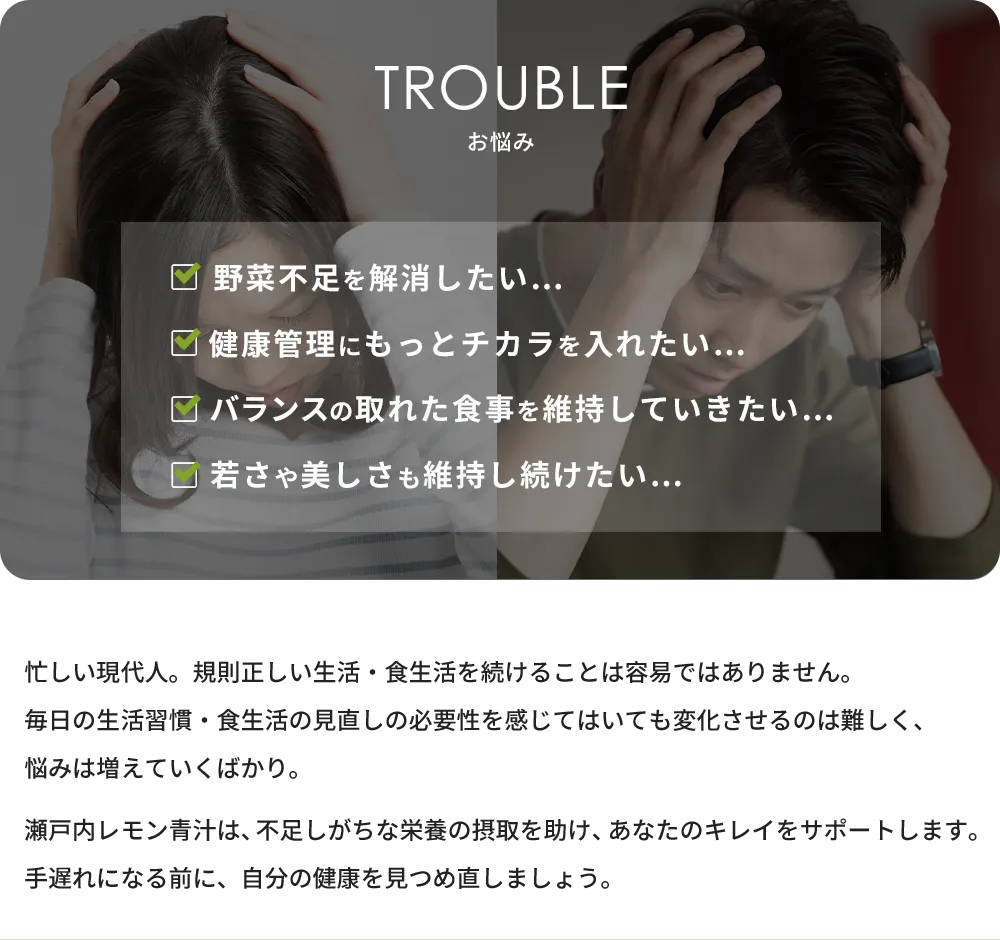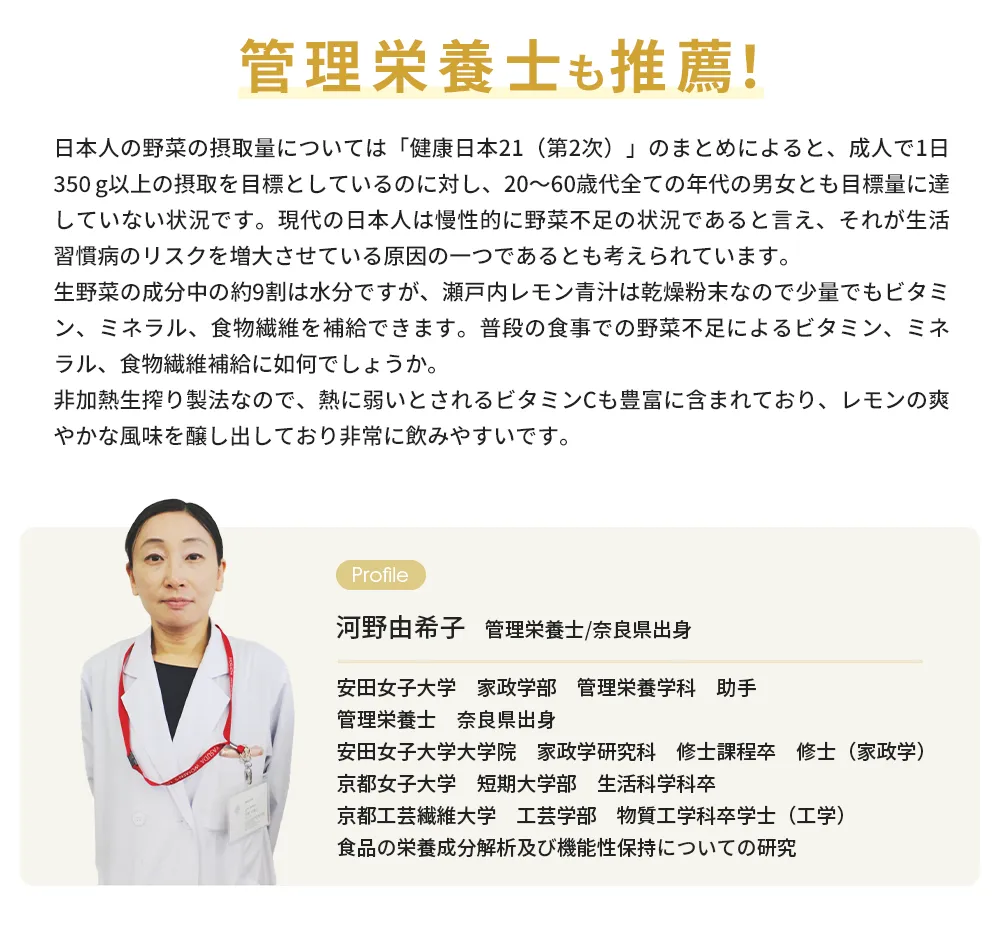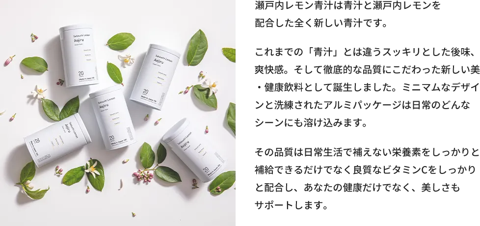 瀬戸内レモン青汁には保存料や防腐剤を使用していないため、飲み物に溶かした状態では保存しないようお願いいたします。